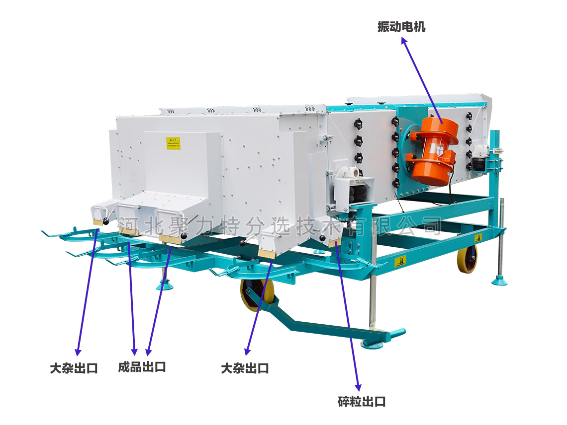根據(jù)物料的外形尺寸來調(diào)整不同規(guī)格的精密沖孔篩片,將物料中的大、小雜去除。