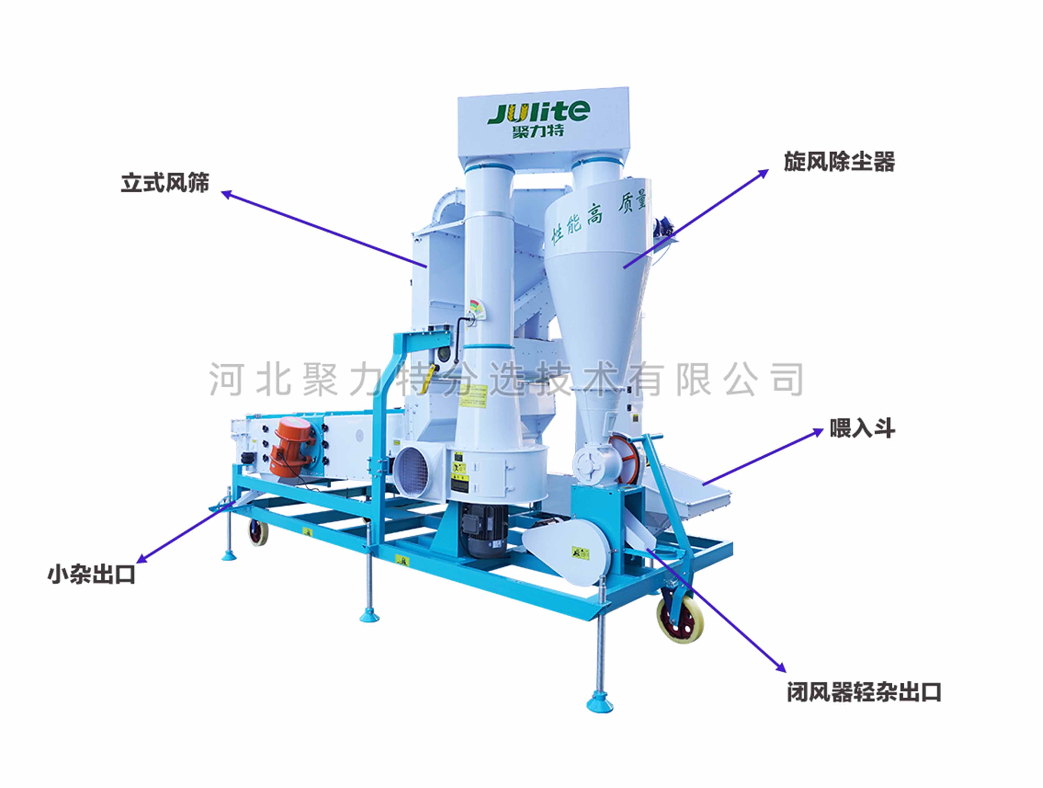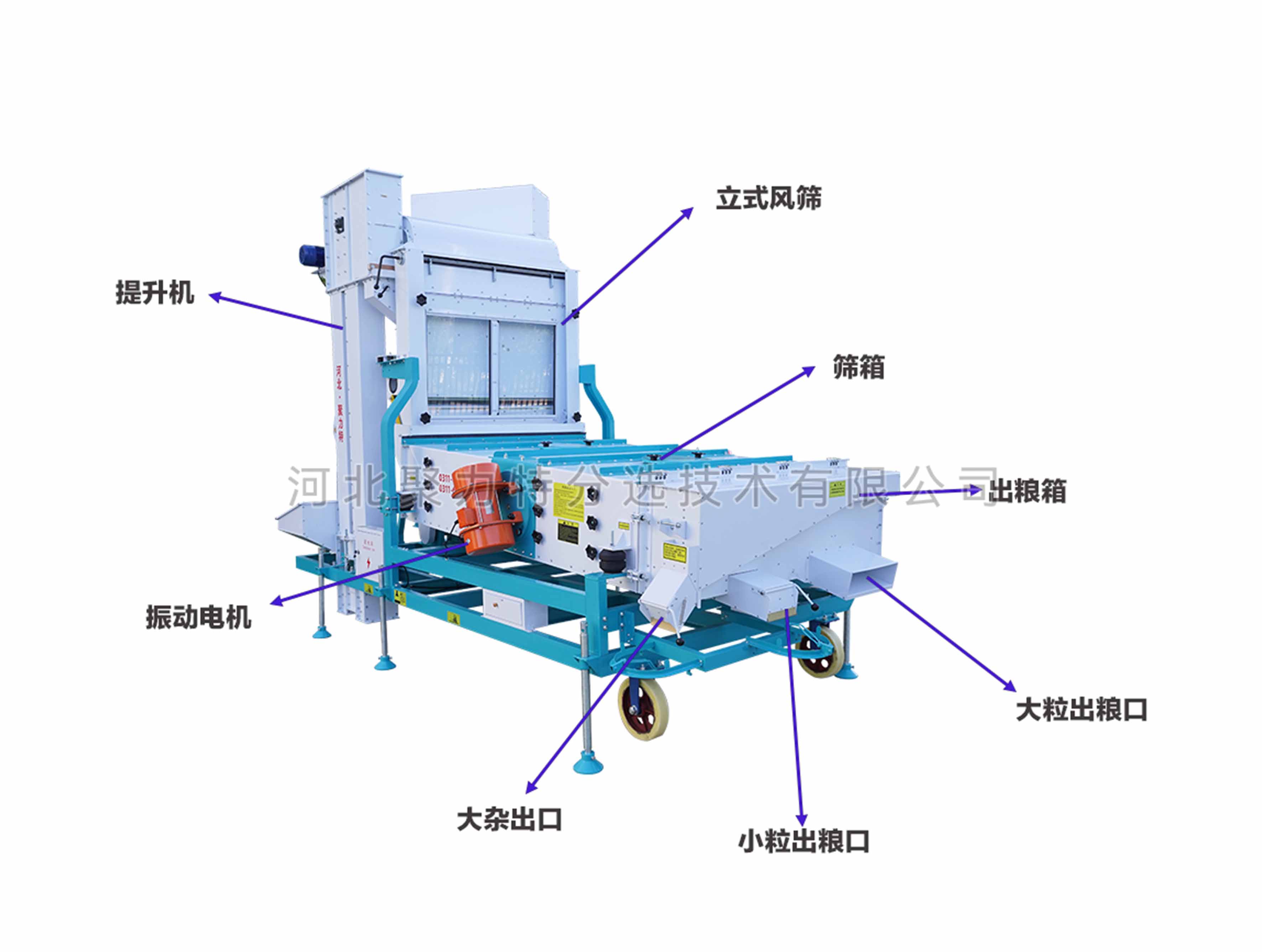5、出糧口可更換: 主出糧口標配為無擋板大口,便于后序提升機的連接,并可根據實際使用需求選配裝有擋板的小出糧口。